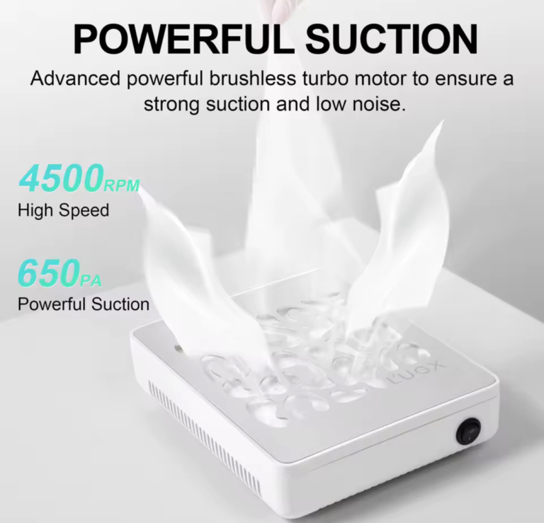 Dotato di un motore potenziato, assicura una potenza di aspirazione superiore, catturando efficacemente ogni residuo di limatura e mantenendo la tua postazione sempre pulita. Nonostante la sua forza, non è particolarmente rumoroso, permettendoti di lavorare senza fastidiose distrazioni e garantendo un’esperienza confortevole sia per te che per le tue clienti.